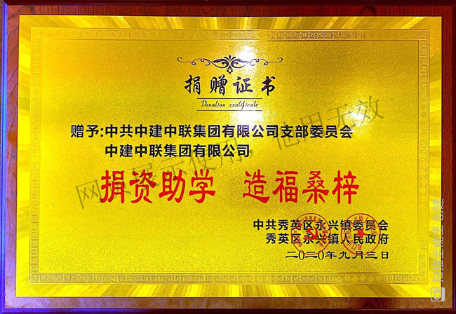 助學金捐贈證書