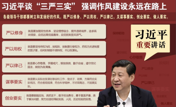 2015年月10日,中共中央辦公廳印發(fā)《關(guān)于在縣處級以上領(lǐng)導(dǎo)干部中開展“三嚴(yán)三實”專題教育方案》,對2015年在縣處級以上領(lǐng)導(dǎo)干部中開展“三嚴(yán)三實”專題教育作出安排。