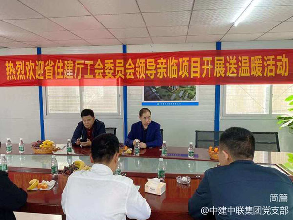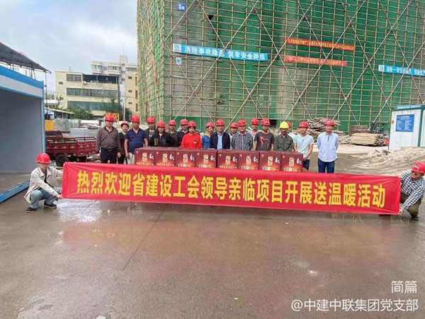1月5日,在春節(jié)即將到來(lái)之際,海南省建設(shè)工會(huì)劉志偉主席帶慰問(wèn)組一行2人到中建中聯(lián)集團(tuán)有限公司正城華府項(xiàng)目開(kāi)展春節(jié)慰問(wèn)一線(xiàn)工人送溫暖活動(dòng),中建中聯(lián)集團(tuán)有限公司董事長(zhǎng)莊炳聰、黨支部書(shū)記周亞平陪同。