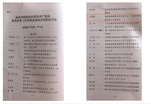 來自全省兩新領(lǐng)域的99名優(yōu)秀共產(chǎn)黨員、98名優(yōu)秀黨務(wù)工作者和50家先進(jìn)基層黨組織受到表彰。中共海南省福建商會黨支部書記、中建中聯(lián)集團(tuán)有限公司董事長莊炳聰被授予海南省兩新組織優(yōu)秀共產(chǎn)黨員稱號及榮譽(yù)證書。