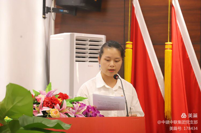 中建中聯集團黨支部代表發言,鼓勵學子們刻苦學習,自立自強,志存高遠,成才報國。學有所成后承傳愛的火種。